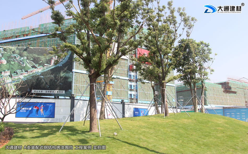 中山大學深圳建設工程位于深圳市光明新區,項目總建筑面積萬平方米,主要由深圳市建筑工務署承建,此項目工程施工圍擋選用的是深圳大通建材提供的鋼圍擋,主要以A類鋼圍擋烤漆半龍骨款為主,個別路段還選用了C類鋼圍擋烤漆款、C類鋼圍擋鍍鋅板款。“符合深圳標準圍擋、美觀環保、抗風力強、安全穩固、可循環使用、節約成本”等是深圳大通建材A類鋼圍擋烤漆半龍骨款的特點,很適合市政建設施工、房地產項目施工、地鐵修建、管網改造、小區改造、城市建設、道路施工等工程使用。