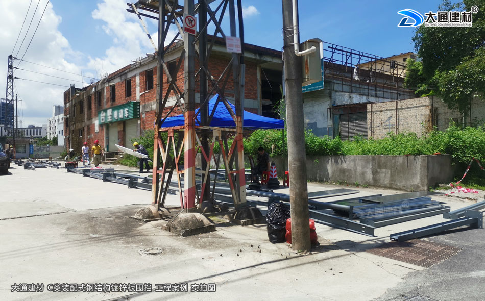 深圳市大通建材鍍鋅板鋼結構圍擋C款應用于深圳市光明區碧水路項目工程中