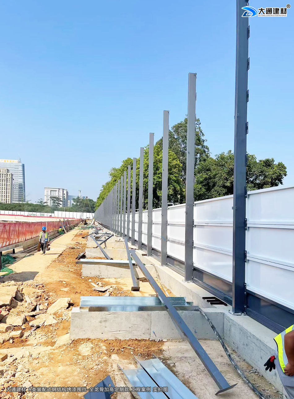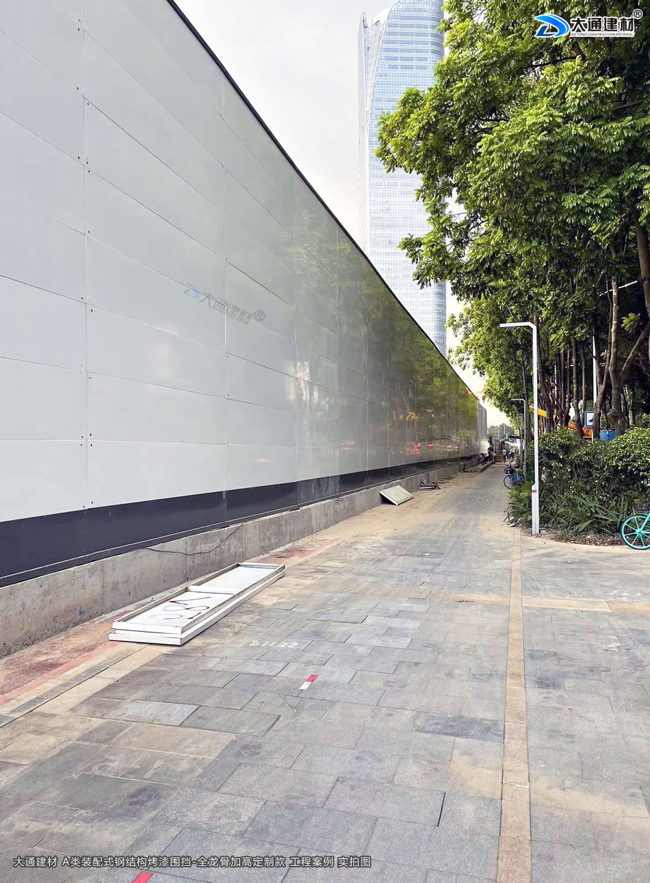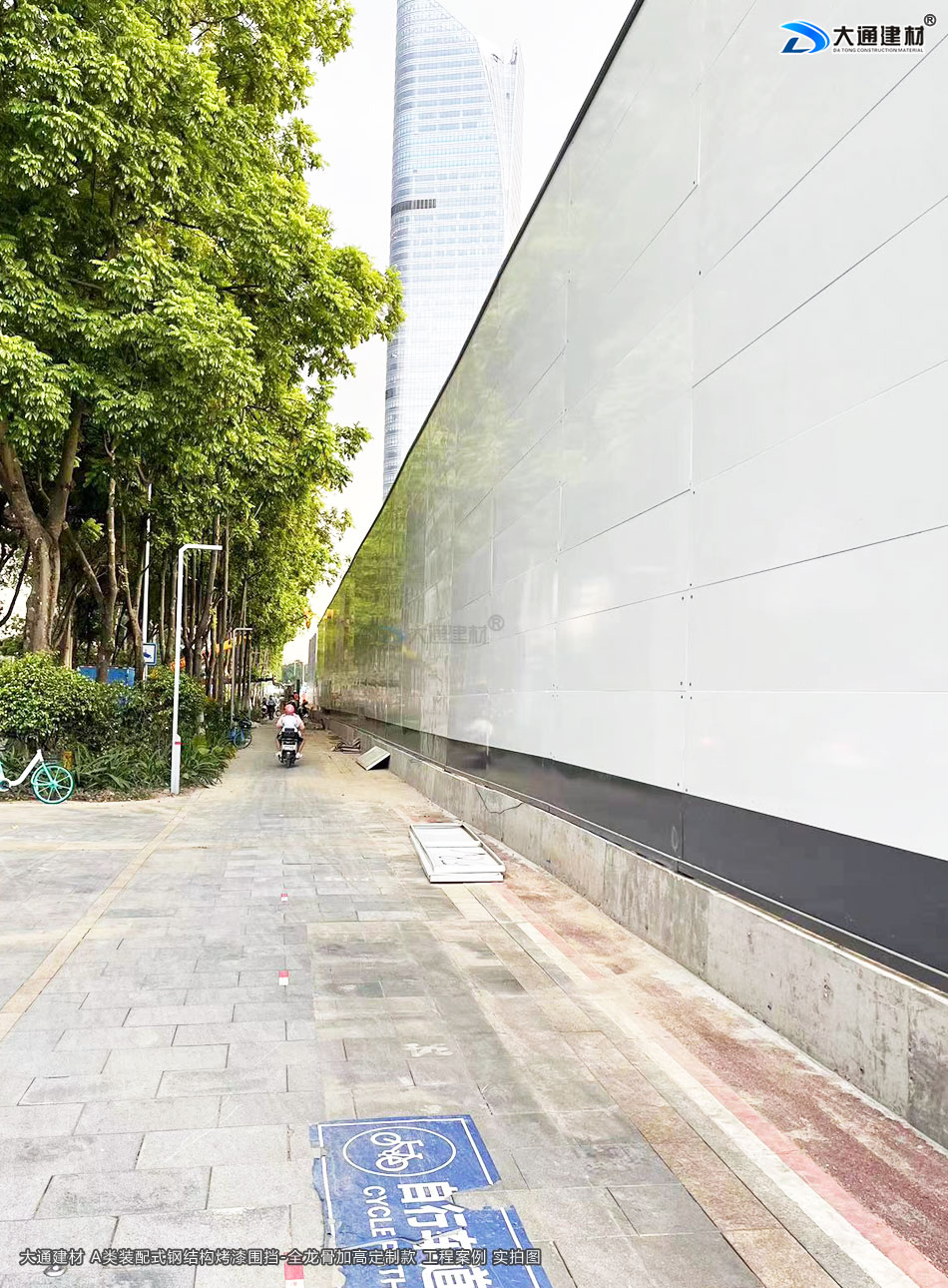 深圳市大通建材生產銷售的A類裝配式烤漆鋼圍擋-全龍骨定制加高款 應用于 深圳建設地產工程項目中