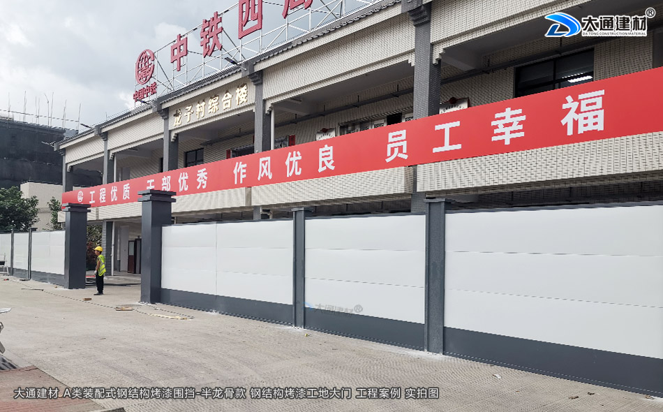 了解更多關于“大通建材 2.5米高烤漆鋼圍擋A款-項目工程圍擋+工地大門”的生產定制、批發零售、施工安裝等詳情 請致電 13826562448 梁先生