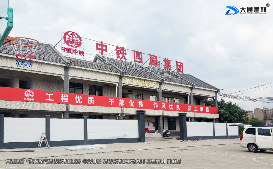 中鐵四局建設集團在惠州惠東縣黃埠惠民公園的項目工程使用的是深圳大通建材生產銷售的A類2.5米高烤漆鋼圍擋A款-項目工程圍擋與鋼結構烤漆工地大門等產品