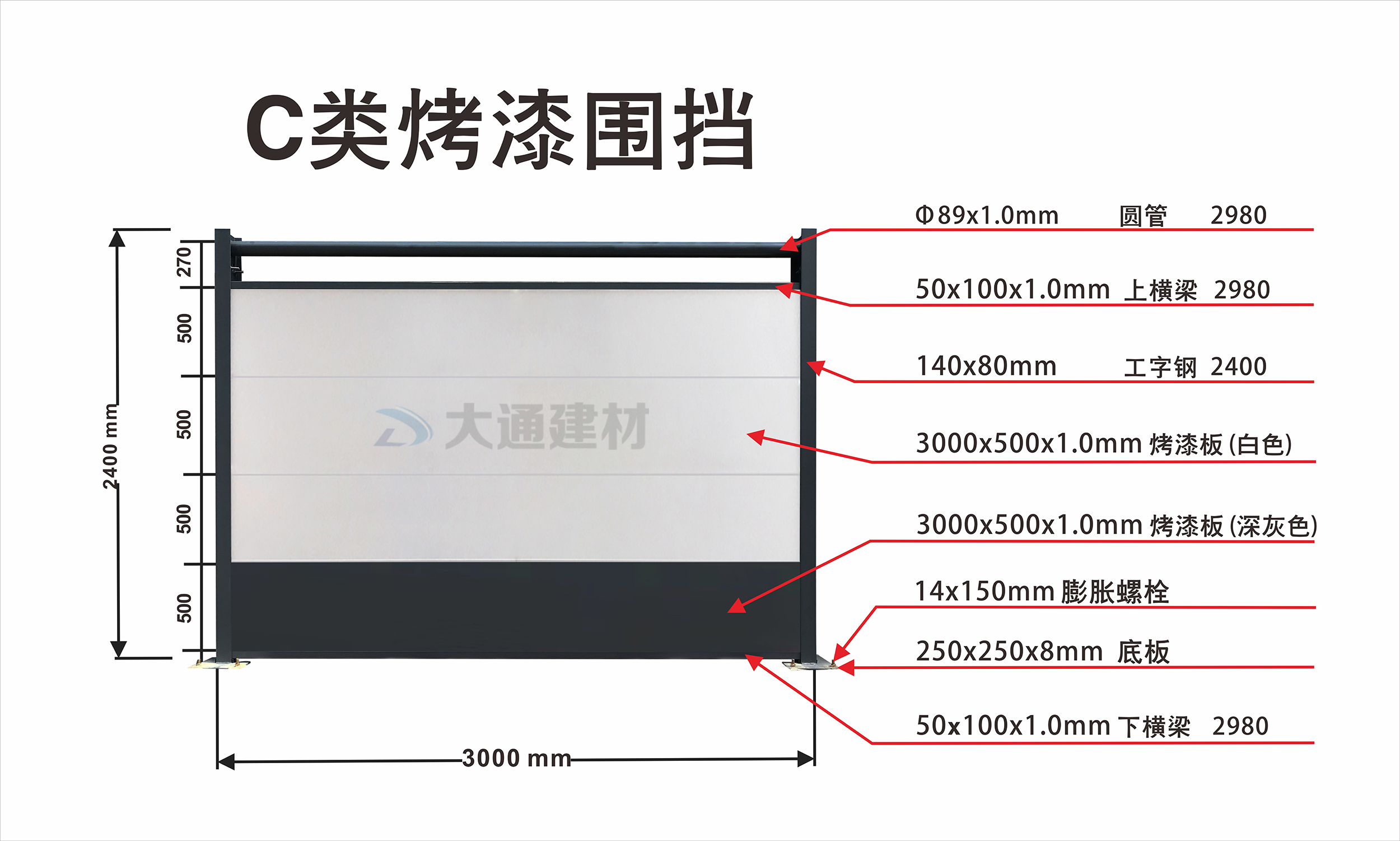 深圳市大通建材C類烤漆圍擋產品特點:
