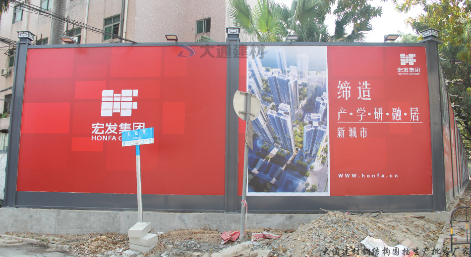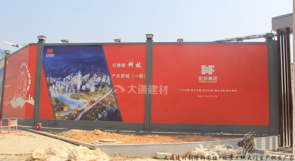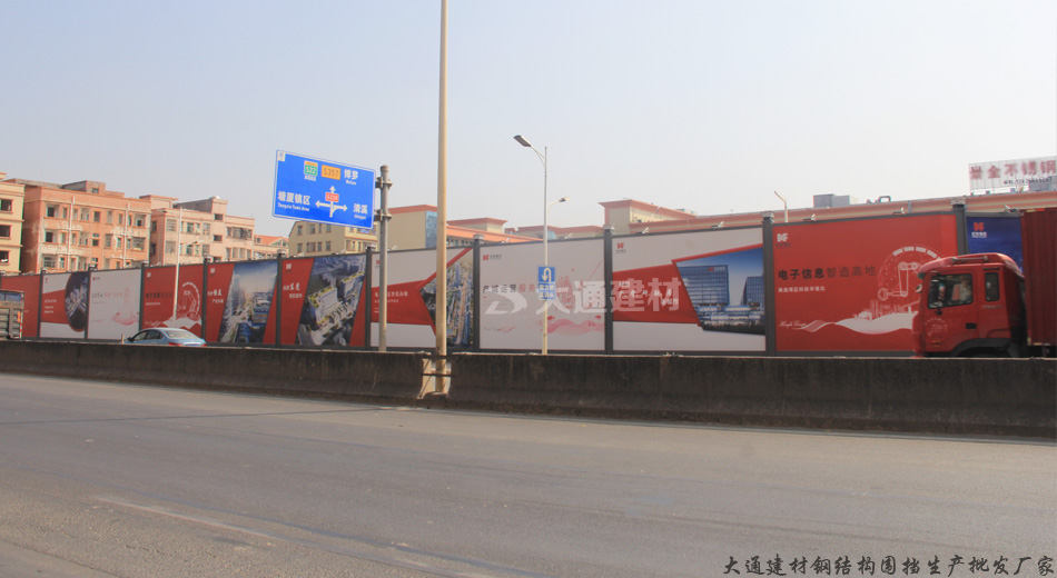 深圳市大通建材有限公司裝配式烤漆鋼圍擋A款-東莞建筑工地圍擋工程案例