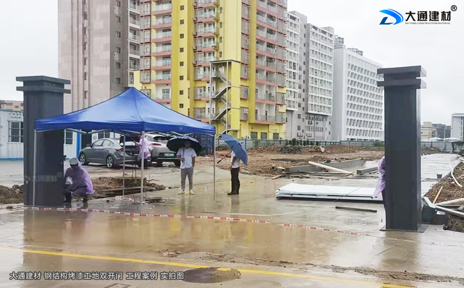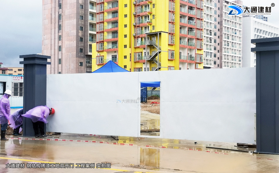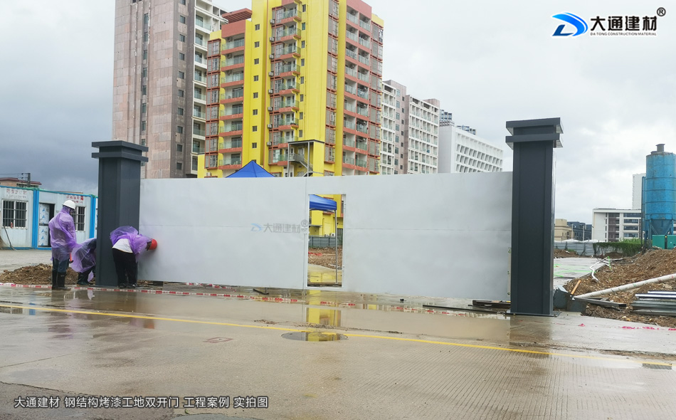 大通建材烤漆鋼結(jié)構(gòu)款工地雙開門-先安裝大門立柱