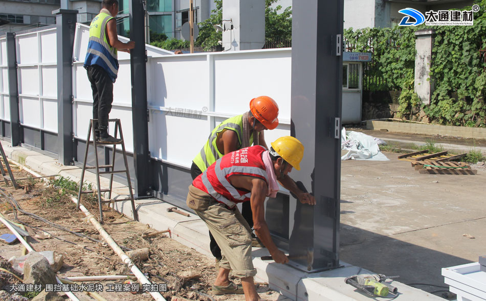 上述展示 深圳市大通建材的圍擋基礎墩與圍擋的安裝過程
