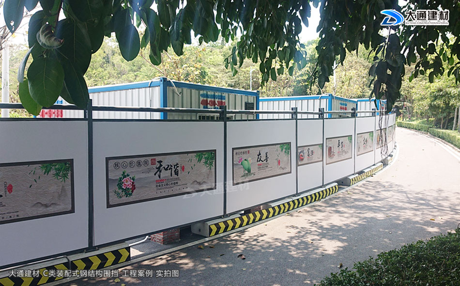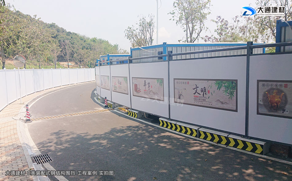 深圳市大通建材圍擋C款符合深圳市政新標準,是一款裝配式圍擋,采用鋼結構設計,由鍍鋅墻板、立柱、上下橫梁等配件組成,拆裝方便、美觀環保、安全穩固,適合深圳市政道路、房地產建設、小區改造施工等工程使用。