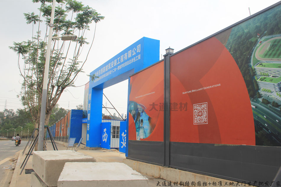 深圳龍華北站建設施工工程采用了深圳市大通建材烤漆圍擋a型+標準工地大門 起到隔離防護作用