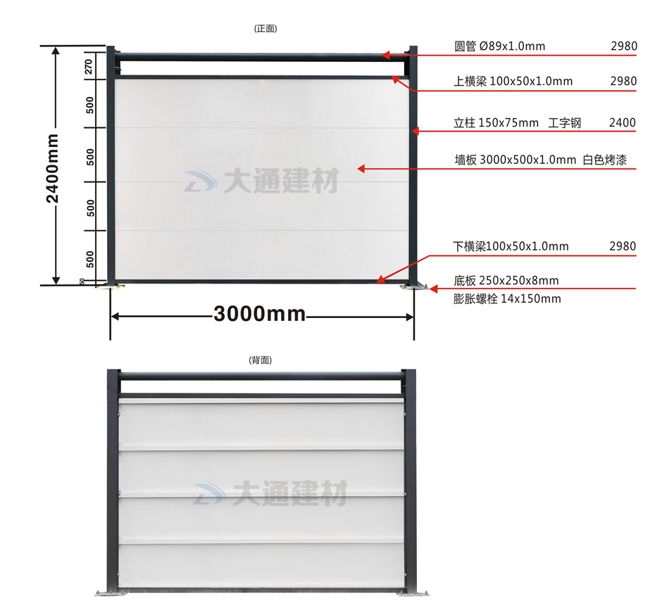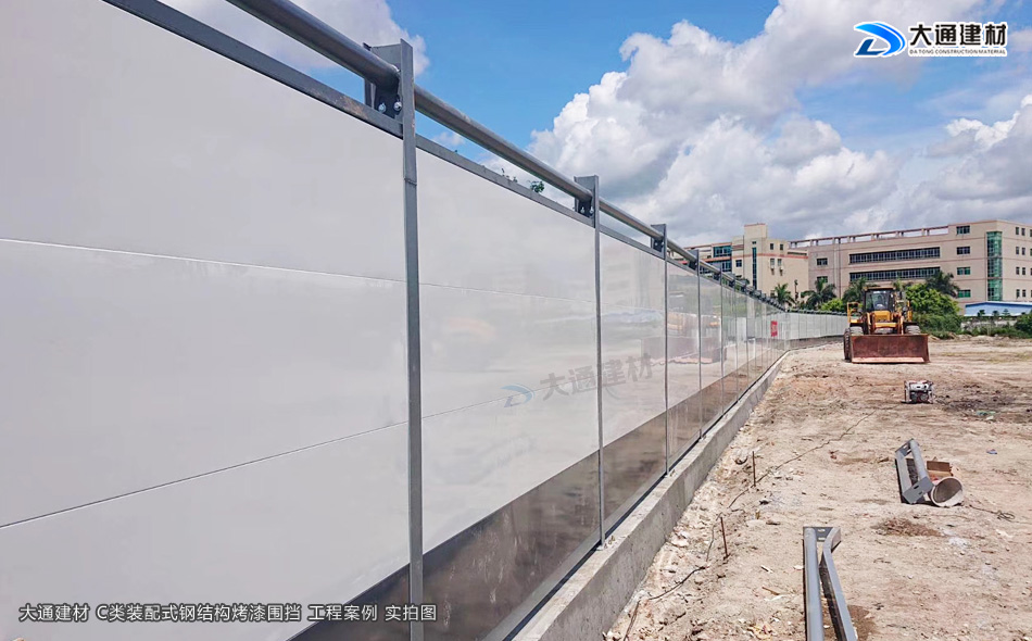 施工安全方案解決工程師,24小時在線等候您的咨詢!深圳市大通建材有限公司10多年來一直從事圍擋生產批發工作,在東莞設有大型鋼結構圍擋生產基地,那么大通建材C類裝配式鋼結構圍擋烤漆款有怎樣的規格特點呢?現在就與大通鋼結構圍擋小編一起了解一下吧。
