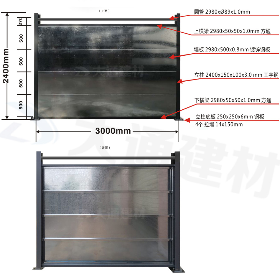 工字鋼圍擋C類鍍鋅板2.4米高無帽款 規(guī)格參數(shù) 如上圖展示
