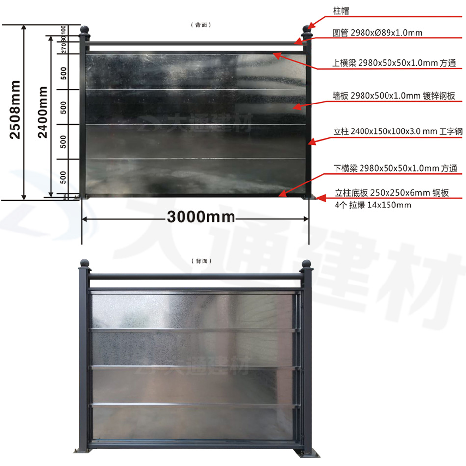 大通建材工字鋼圍擋C類鍍鋅板款亦是一款新型的裝配式鋼結(jié)構(gòu)圍蔽,符合市政新標(biāo)準(zhǔn)、拆裝方便、結(jié)構(gòu)牢固、抗風(fēng)力達(dá)到10級(jí)、安全性高,圍擋生產(chǎn)源頭廠家直接銷售、價(jià)格更便宜。