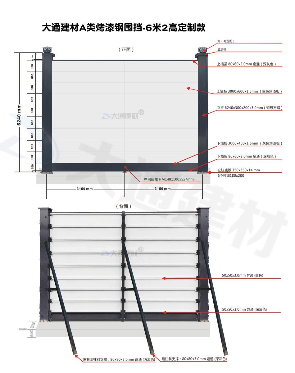 6米高A類裝配式烤漆鋼圍擋-全龍骨定制款