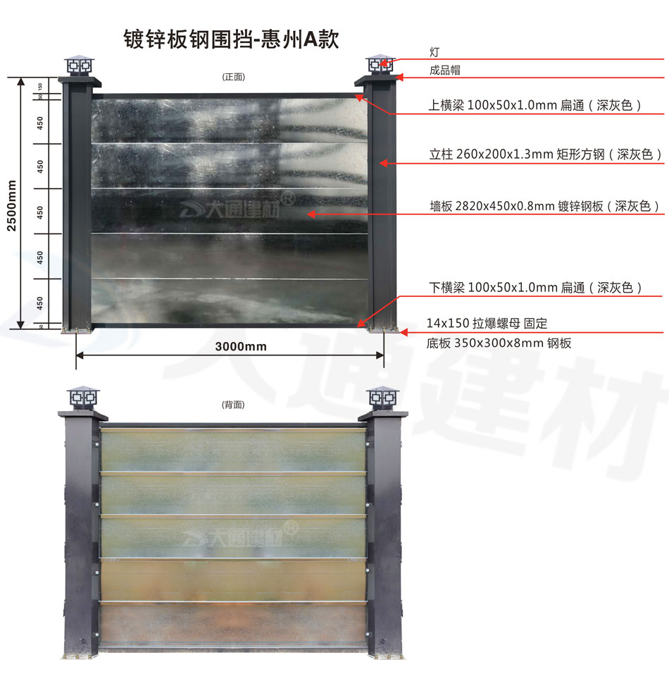 深圳大通建材 鍍鋅板裝配式鋼圍擋-惠州A款 生產批發(fā)源頭廠家