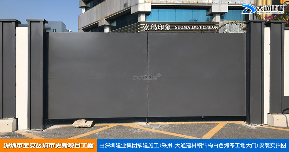 深圳市大通建材專業(yè)鋼結(jié)構(gòu)工地烤漆雙開(kāi)門(mén)生產(chǎn)批發(fā)源頭廠家,在東莞設(shè)有大型工地鋼結(jié)構(gòu)烤漆大門(mén)生產(chǎn)基地,貨源充足,由廠家直接銷(xiāo)售價(jià)格便宜;一龍條服務(wù),能夠?qū)崿F(xiàn)客戶下單后馬上發(fā)貨安裝,客戶還可根據(jù)實(shí)際需求進(jìn)行定制化生產(chǎn)。了解更多“大通建材工地大門(mén)”規(guī)格與價(jià)格詳情 請(qǐng)咨詢 13826562448 梁先生