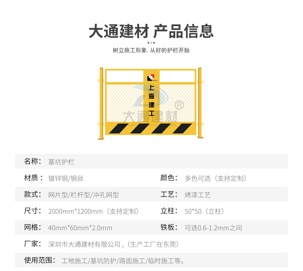 深圳市大通建材有限公司是一家集研發、生產、安裝、服務于一體的綜合性圍擋廠家,公司主營產品鋼圍擋、鋼結構圍擋、PVC圍擋、施工圍擋、市政圍擋、工地圍擋、烤漆鋼圍擋,官網:http://m.zhaopinzj.cn/ ,銷售熱線:138 2656 2448