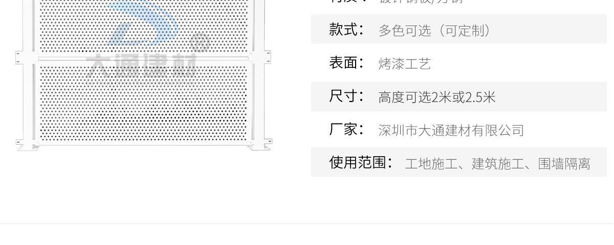 深圳市大通建材有限公司是一家集研發、生產、安裝、服務于一體的綜合性圍擋廠家,公司主營產品鋼圍擋、鋼結構圍擋、PVC圍擋、施工圍擋、市政圍擋、工地圍擋、烤漆鋼圍擋,官網:http://m.zhaopinzj.cn/ ,銷售熱線:138 2656 2448