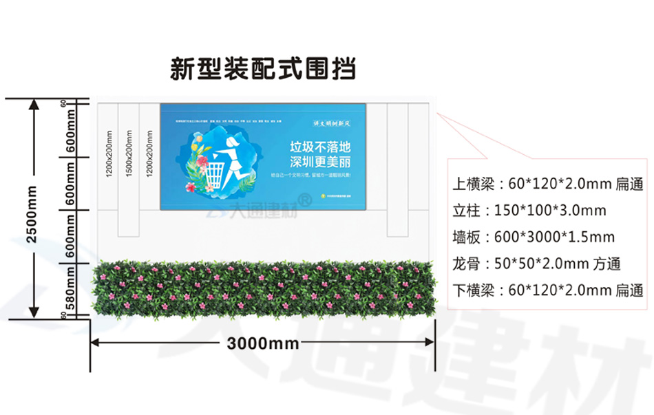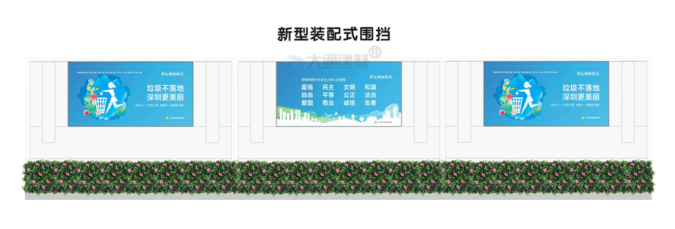深圳市大通建材有限公司,大格局、通天下! 新型裝配式鋼結構圍擋A款/B款/C款,PVC圍擋,圍擋基礎,工地大門等產品生產廠家電話13826562448