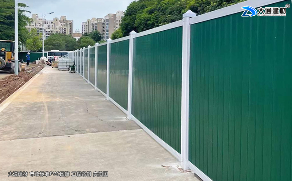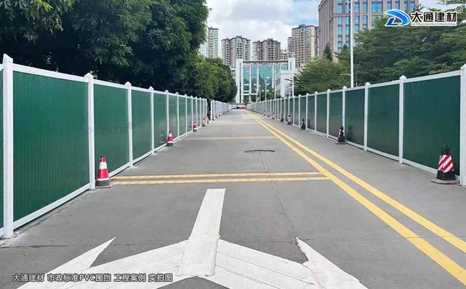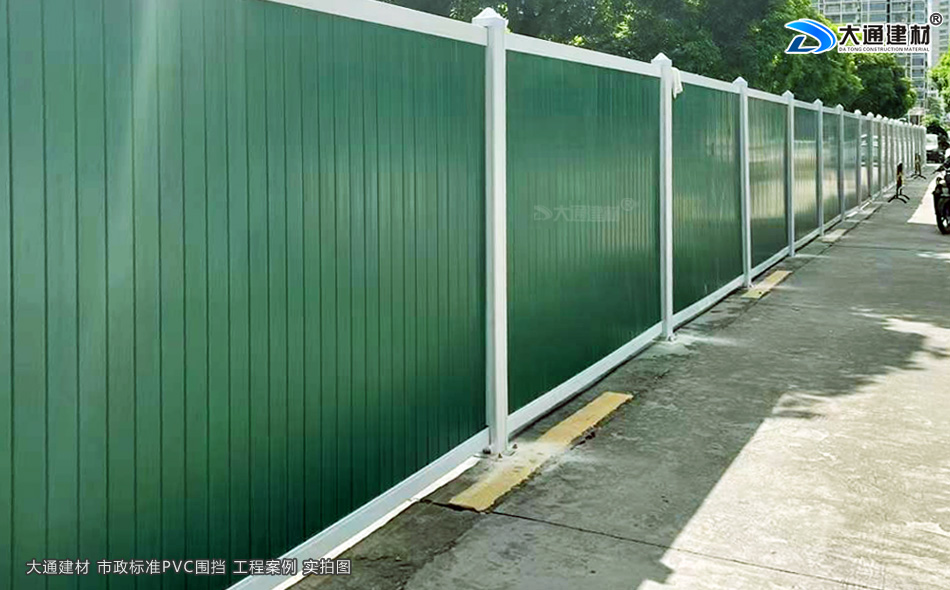 深圳大通建材綠色PVC圍擋表面經(jīng)烤漆工藝噴涂、鮮艷的綠色、表面光滑,具有美觀環(huán)保、安全穩(wěn)固、經(jīng)久耐用等特點(diǎn),適合市政道路建設(shè)施工、地產(chǎn)工程項(xiàng)目建設(shè)施工、管網(wǎng)改造施工、路橋維護(hù)施工等工程選用。
